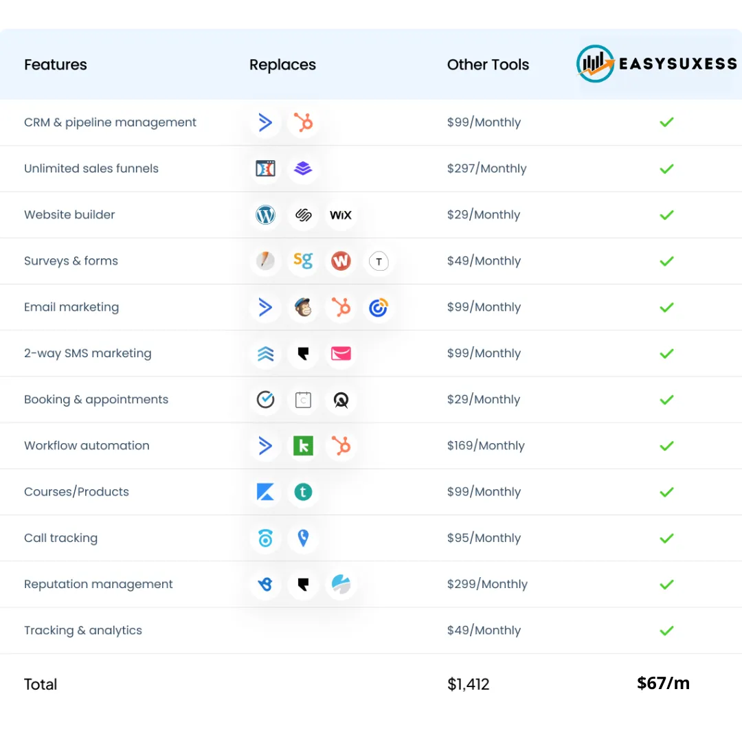بمنصة واحدة تجمع كل من أدوات Funnel Builder، CRM، Email & SMS Marketing، Automations، Bookings، Client Portal — الكل مدمج متناسق ومترابط 100%.