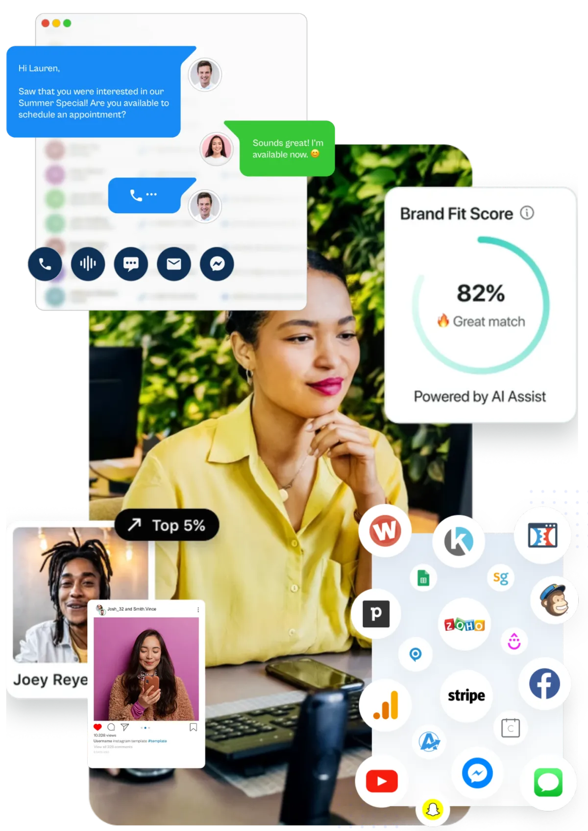 من خلال Phone Connect، Voicemail Drops، SMS/MMS، Emails، وFacebook Messenger — تواصل مع عملائك في القناة التي يفضلونها، دون الحاجة لاستخدام أي أداة خارجية.